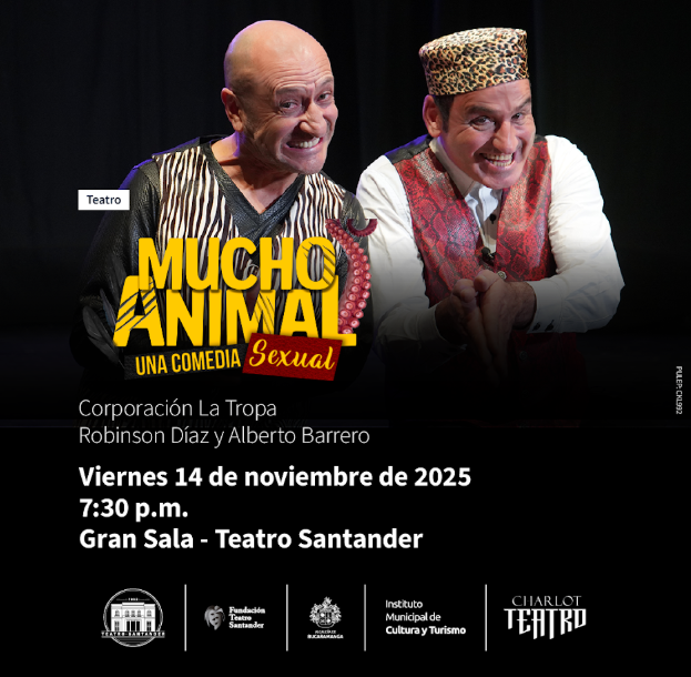 Mucho Animal, una propuesta teatral audaz y divertida que rompe con la rutina y sumerge al espectador en una comedia repleta de absurdos y carcajadas. Bajo la dirección de César Betancur, la obra cuenta con las actuaciones de Robinson Díaz y Alberto Barrero como dos "bestias" que, con mucho profesionalismo y originalidad, exploran la nobleza y el liderazgo de los animales a través de dispares y situaciones cómicas. A través de este enfoque, la obra imagina cómo sería la sexualidad humana si tomáramos como referencia algunos comportamientos animales, reflexionando sobre la complejidad y las lecciones que la naturaleza tiene para ofrecernos en cuanto a relaciones y comportamientos.