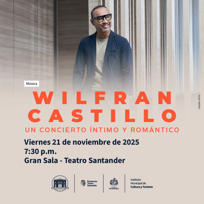 El Teatro Santander se viste de gala para recibir a Wilfran Castillo, uno de los compositores y cantautores más importantes de Colombia, en un concierto íntimo y romántico donde las melodías se entrelazan con las historias que les dieron vida.
