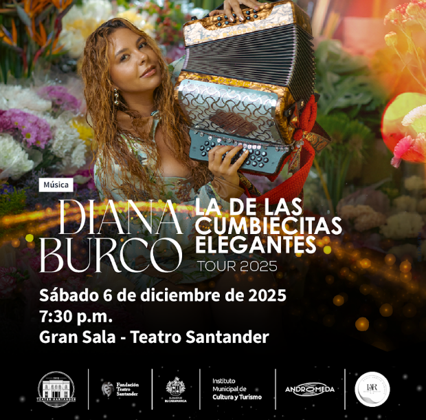 La de las cumbiecitas elegantes tour 2025" es la nueva gira de Diana Burco, donde la artista presenta en vivo su cuarto álbum de estudio, un trabajo vibrante que celebra la cumbia en clave contemporánea.Acompañada de su banda completa, Diana ofrecerá un show lleno de ritmo, baile y emoción, en el que se entrelazan los sonidos tradicionales con una estética moderna y poderosa. Además de interpretar las canciones de su más reciente producción, el concierto recorrerá los temas más icónicos de sus discos anteriores, haciendo de cada presentación un viaje musical inolvidable, cargado de identidad, sentimiento y elegancia tropical.